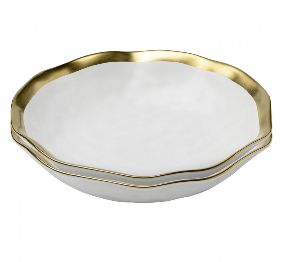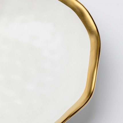 La gamme Bell vous propose une série de bols, tasses, plats et assiettes. En porcelaine blanche avec le bord doré, elle apporte de l'élégance à vos repas.