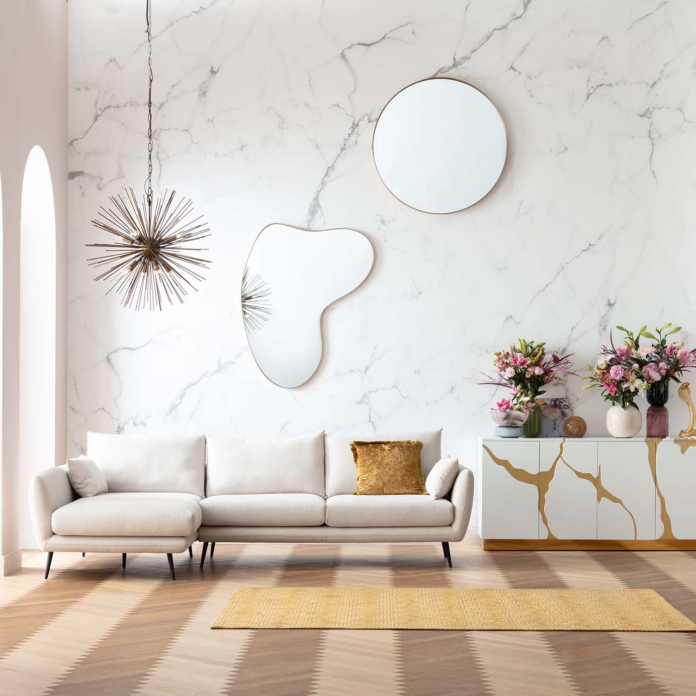 Avec son tissu crème et ses pieds noirs, ce canapé est facile à combiner avec vos meubles : il est donc particulièrement adapté pour les amoureux de décoration qui changent le style de leur salon fréquemment. Il se marie en effet autant avec du noir pour un intérieur moderne qu'avec du blanc pour une ambiance douce.
