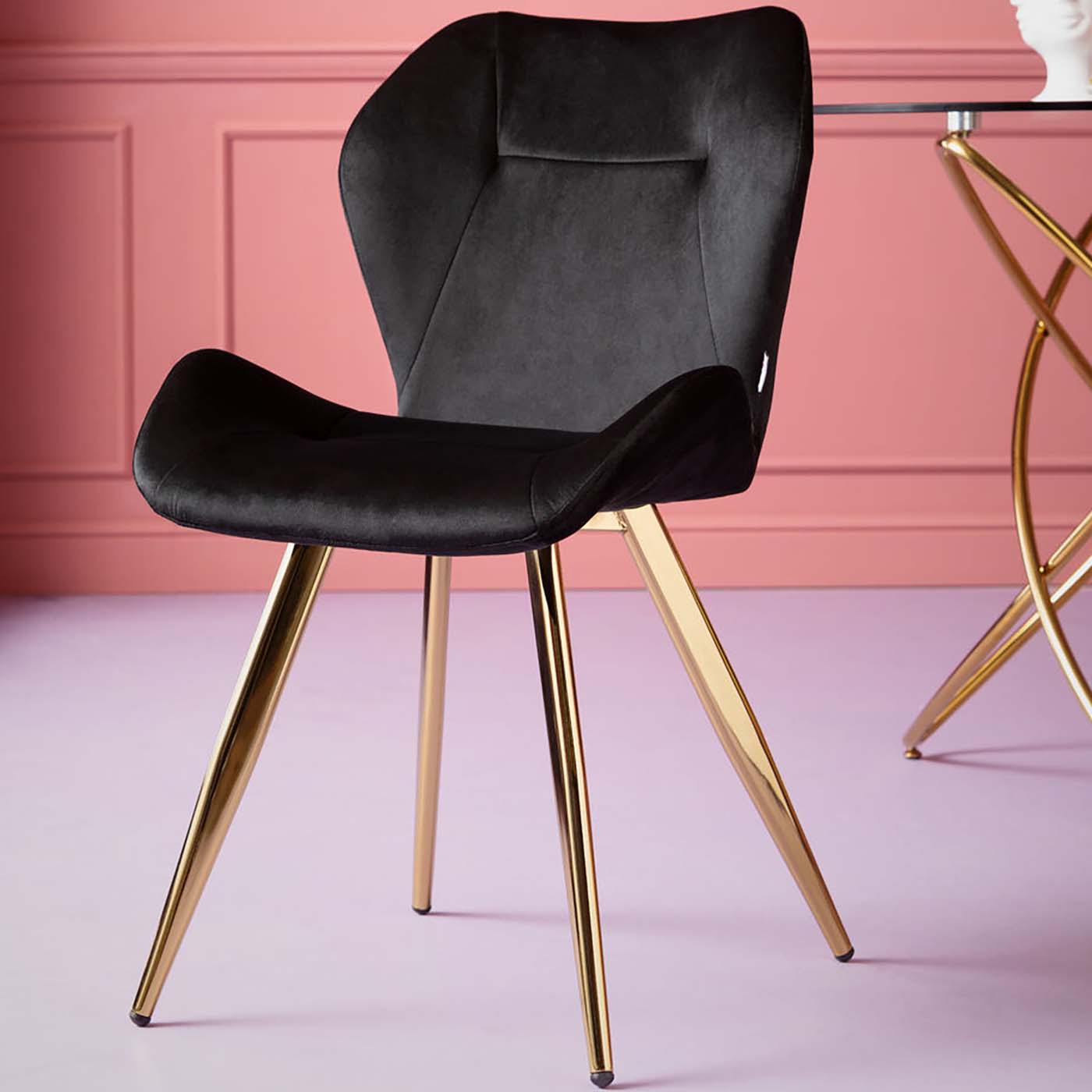 • Chaise Viva velours noir et or Kare Design