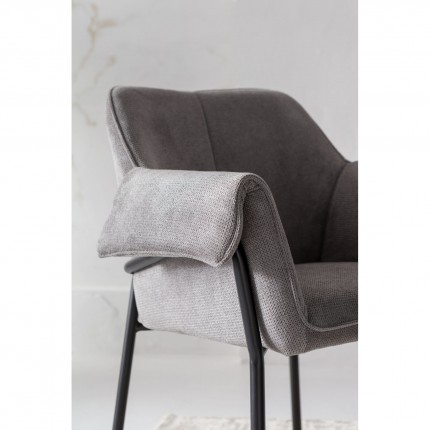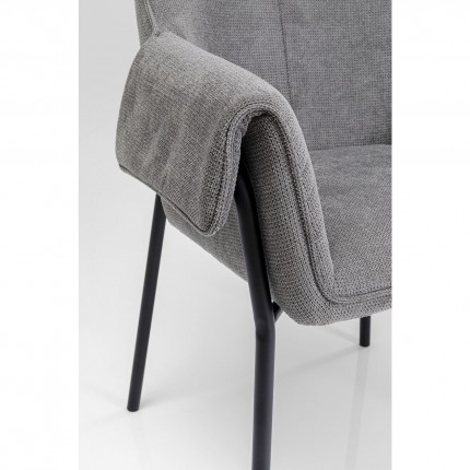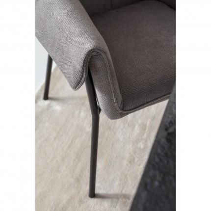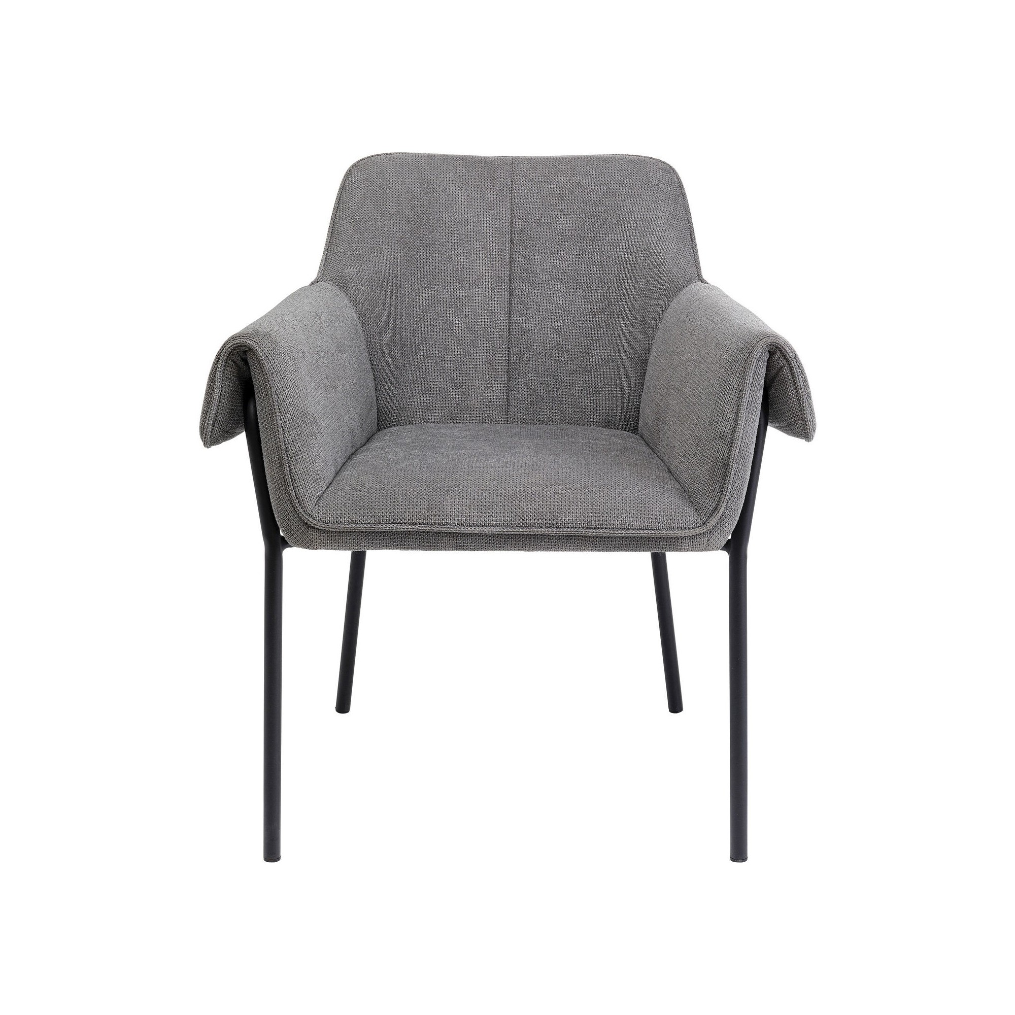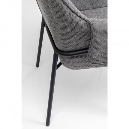 Avec son tissu gris tressé et ses pieds en acier noir, cette chaise convient aux intérieurs modernes discrets et épurés.
