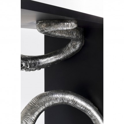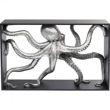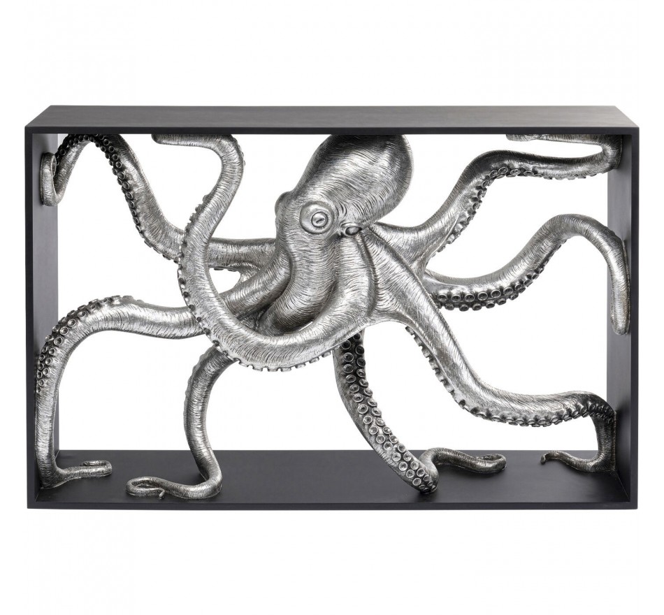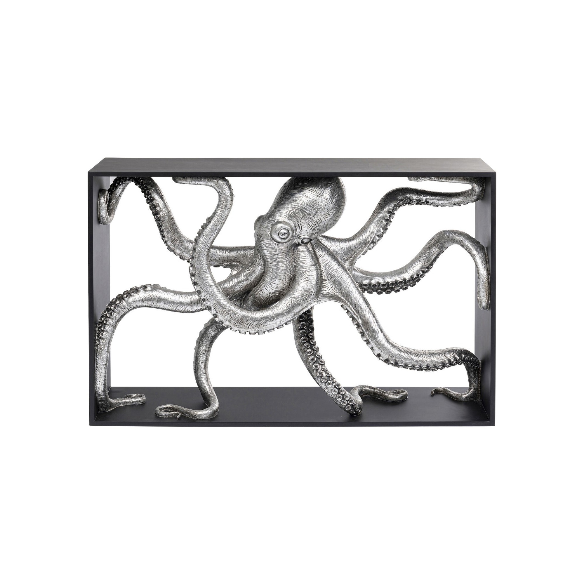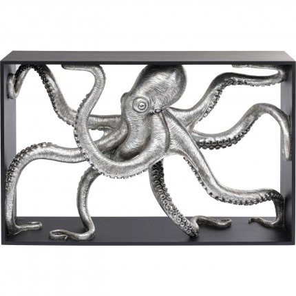 Plongez dans un univers marin avec cette pieuvre en relief enfermée dans une structure rectangulaire noire. Cette console se prête à une décoration "bord de mer" ou bien à un intérieur steampunk.
