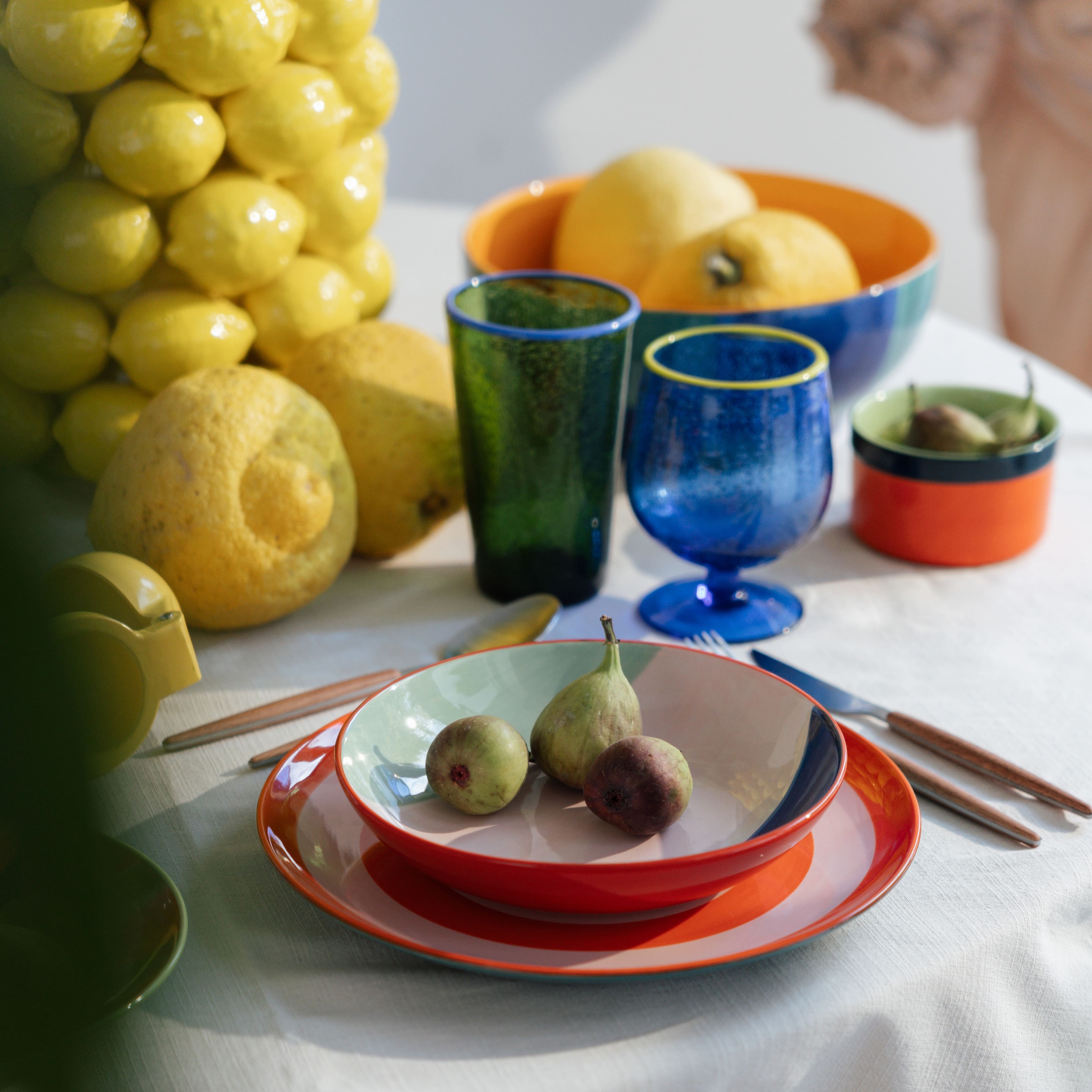 The Capri range brings a breath of good cheer to your table with its bright colors and retro charm. Plates, bowls and mugs are adorned with sunny patterns for tableware full of pep, ideal for brightening up every meal.