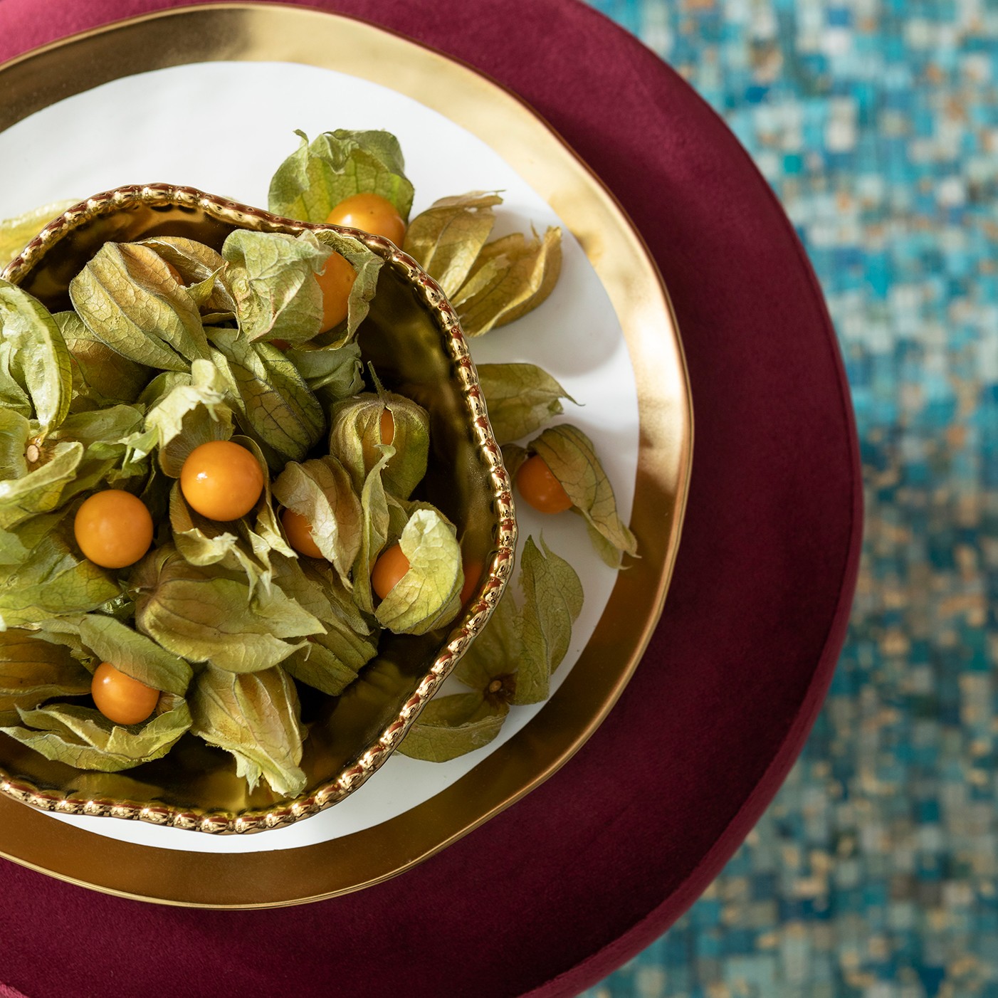 The Bell range offers a series of bowls, cups, dishes and plates. In gilded porcelain with embossed rim, this bowl completes your table decoration with chic.
