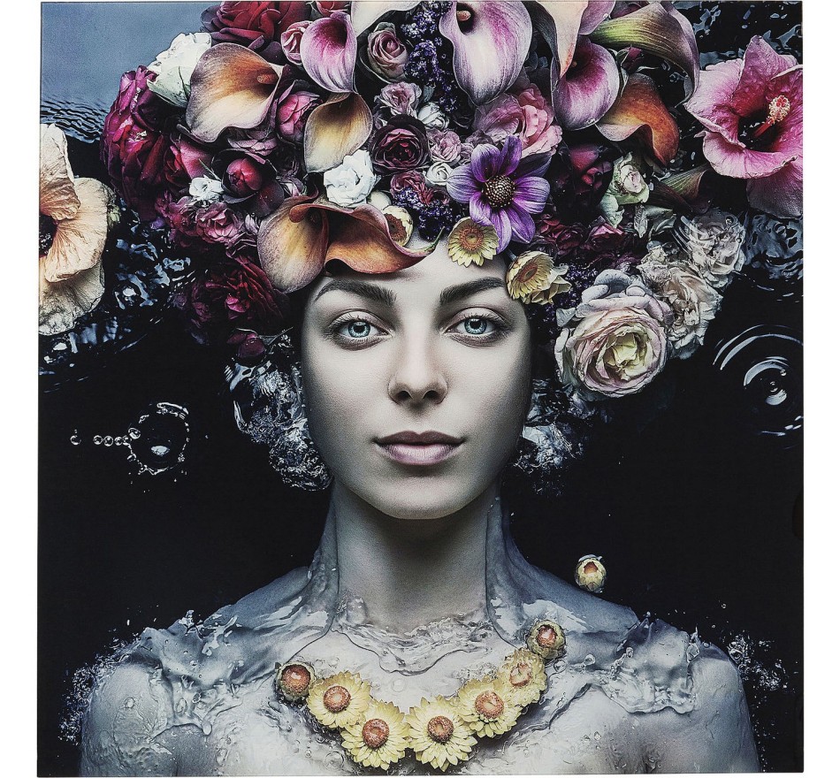 This glass painting features a woman bathing amid flowers in a delicate, poetic composition. Its pastel hues diffuse a soft, soothing atmosphere. Whether in an entrance hall or above a sofa, it adds a note of elegance to your decor.
