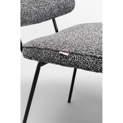 This set, comprising a table and two chairs, brings a touch of timeless elegance to your interior. The table, with its steel base and marble top, recalls the charm of Parisian terraces, ideal for enjoying a coffee or breakfast. The vintage-style chairs combine comfort and character with their black steel frame and black and white looped fabric seat.