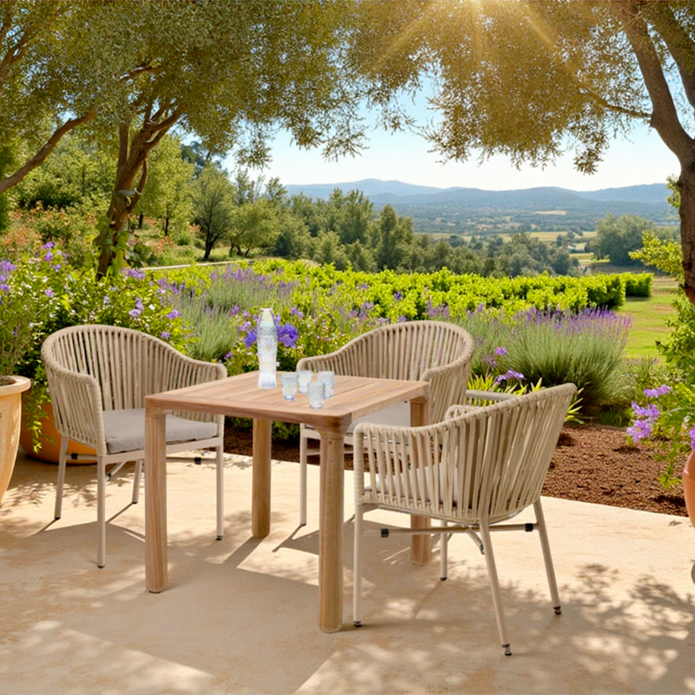 This comfortable outdoor table chair seduces with its softly curved silhouette and airy allure. The fine weave lends it an impression of lightness while creating a modern, warm outdoor ambience. Its slender legs and sturdy structure contrast with the soft lines. Armrests and a comfortable seat offer optimum comfort and invite you to relax. Easy to care for, the braiding is ideal for outdoor use and underlines the chair's simplicity.