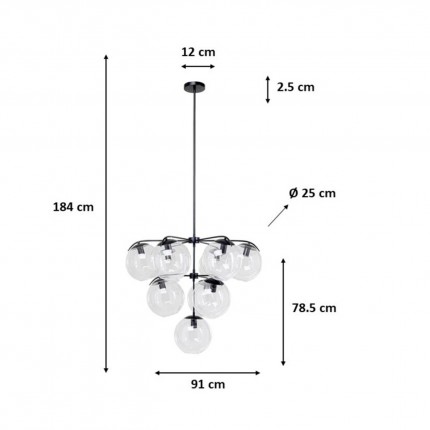 230 V, 50/60 Hz. E14 lampholder. Number of bulbs: 10, max 40 watts. Bulbs not included. Supplied partly disassembled. Cable length: 100 cm. Height adjustable from 110 cm to 190 cm.
