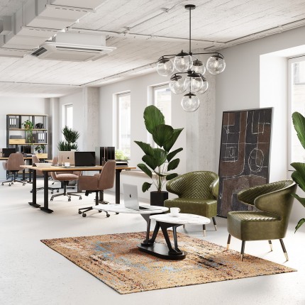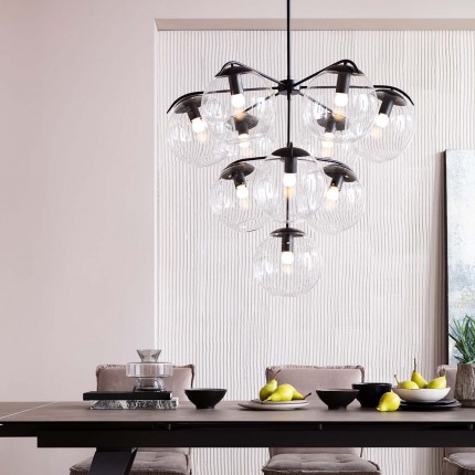 This industrial-style suspension lamp spreads direct light thanks to its clear glass globes shades, complimented by a minimalist black steel frame.