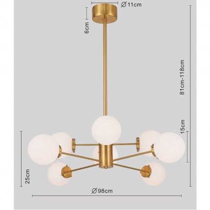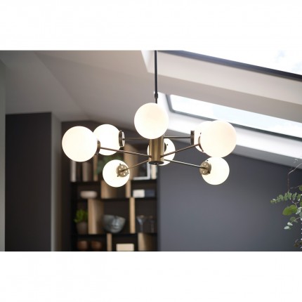 Add a touch of glamour to any room with our Heavenly pendant lights. They are made up of 6 or 8 white globes mounted on a gold or black structure, offering you the ideal choice to sublimate your interior. Perfect in particular for illuminating a round table in a dining room, this suspension will enhance the elegance of your space.