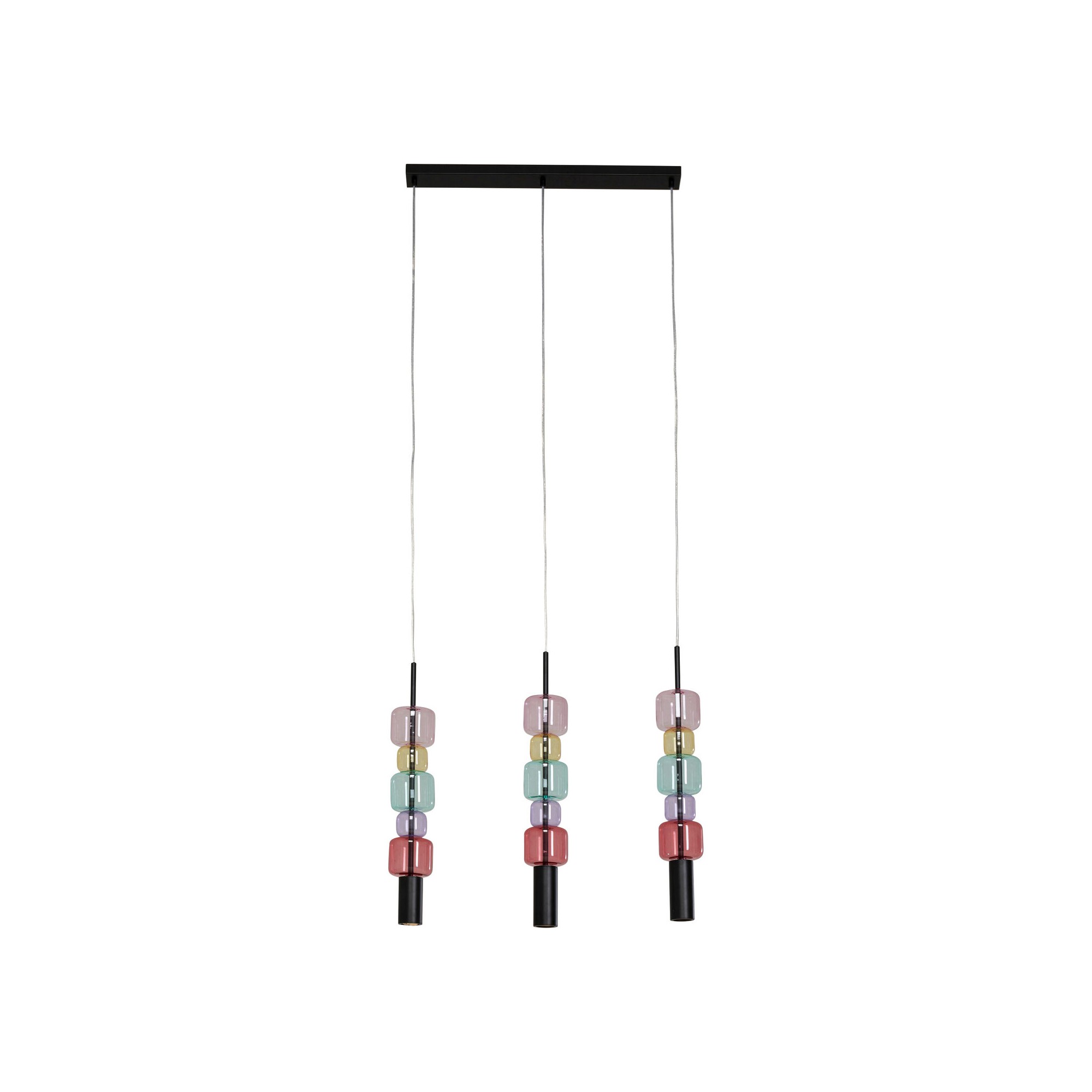 This retro-style suspension lamp will bring color to your interior with its beaded shades in pink, yellow, blue, purple and red-tinted glass.