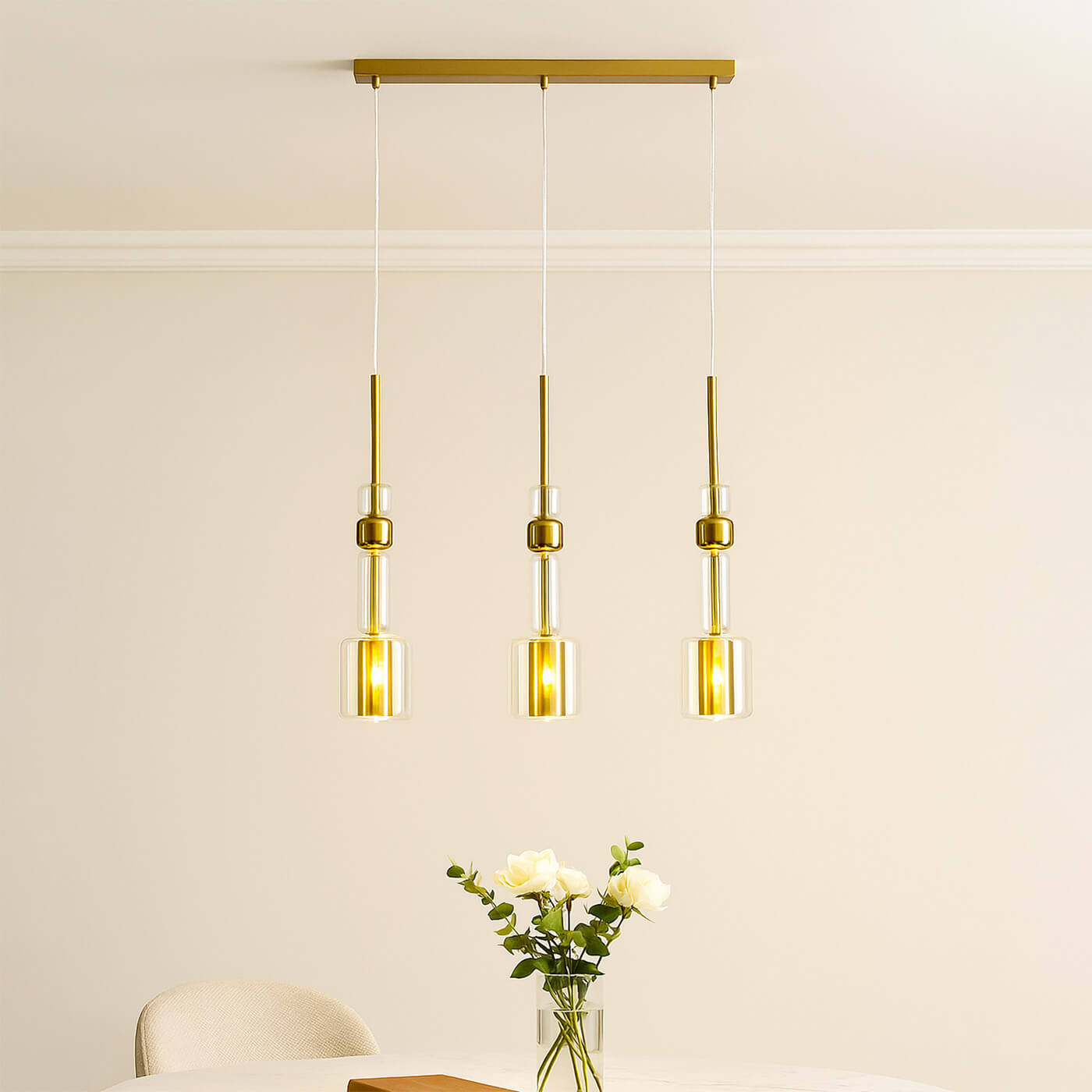 This elegant suspension lamp enhances your interior with its cascading shades combining gold-plated steel and clear glass.
