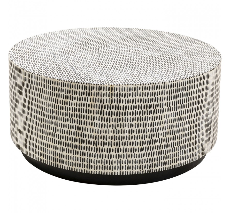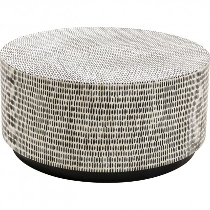 This round white coffee table catches the eye with its small black oval motifs spread across its entire surface. A graphic, peppy design, ideal for adding a touch of style to your interior.