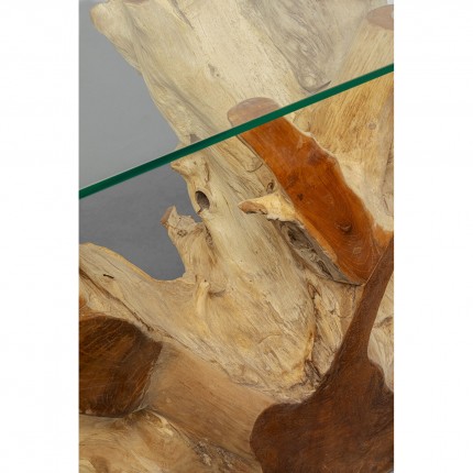 The console comes with a 10 mm glass top to be placed on the legs. The teak wood base is different for each model. Each piece of furniture is therefore unique. Maximum load capacity: 25 kg.