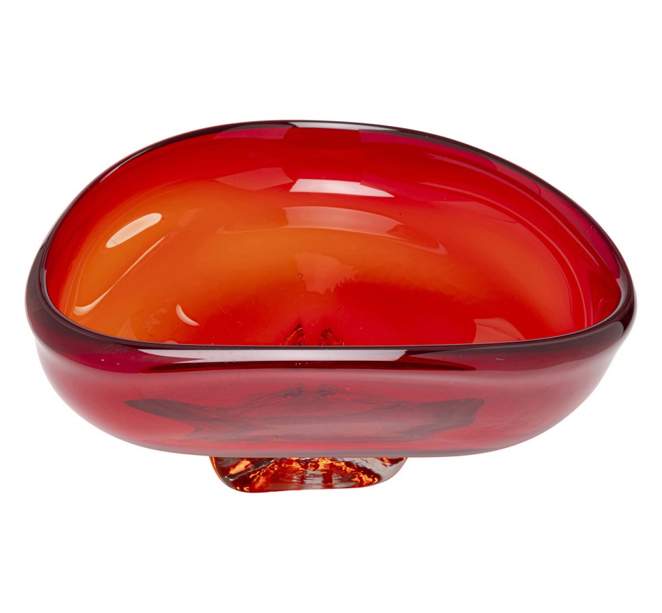 This red glass bowl brings a touch of vibrant color to your home. Perfect for displaying fruit or any other decorative object, it's a bold choice to brighten up your table or shelves.