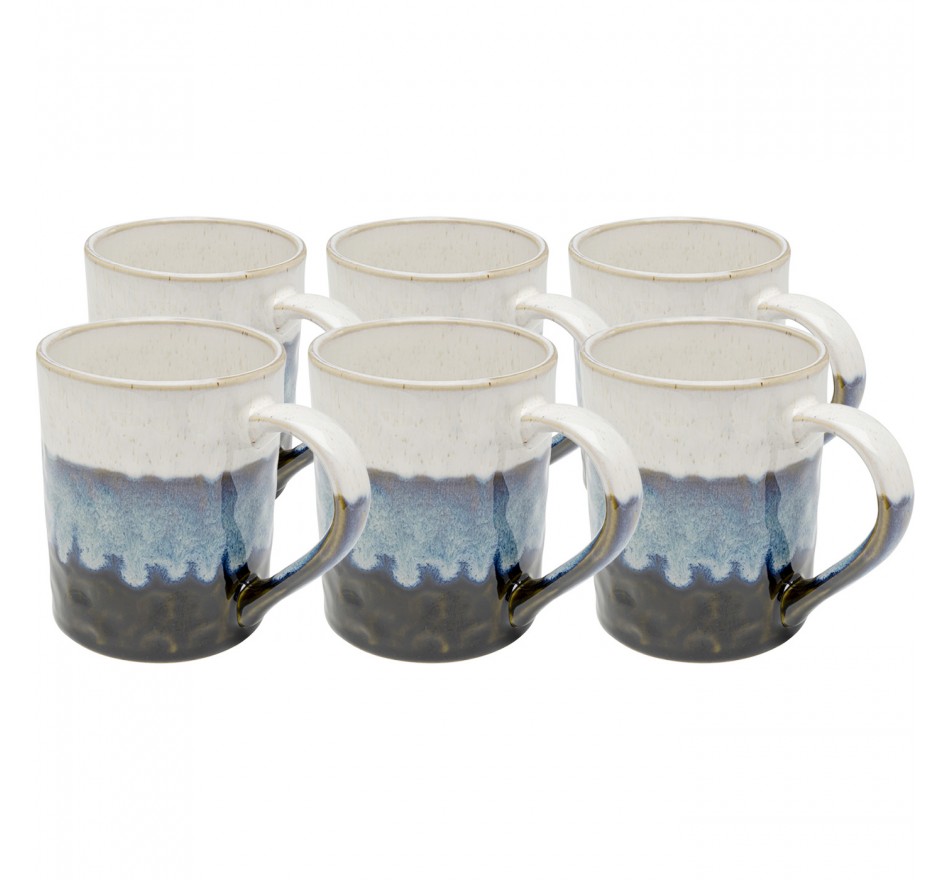 The captivating design of these mugs, starting with a white hue at the top, blends delicately into shades of blue, brown and dark green. This color gradient creates a sophisticated effect, perfect for enjoying your favorite drinks!