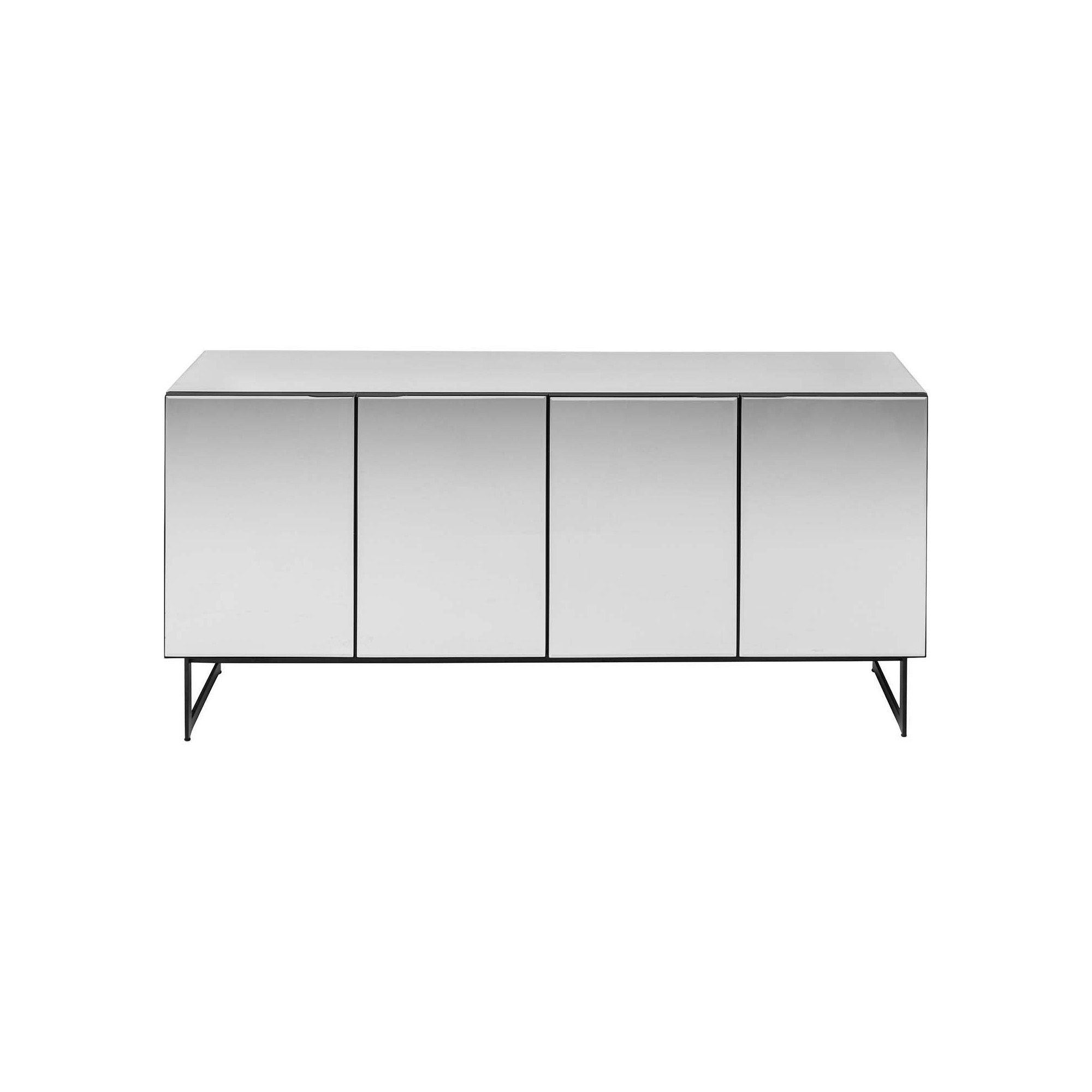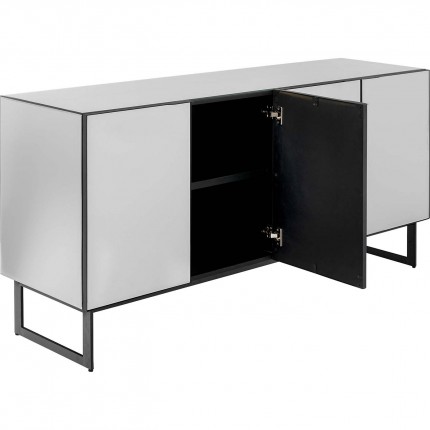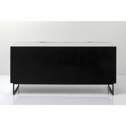 Chis TV stand is a unique and elegant piece of furniture. It offers a large storage capacity behind its 4 doors. Its black finish combined with the mirror front creates a striking contrast that brings a sophisticated touch to your home.