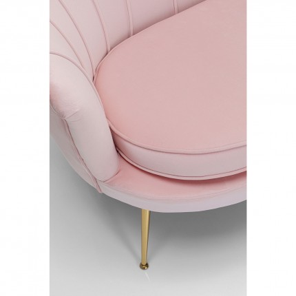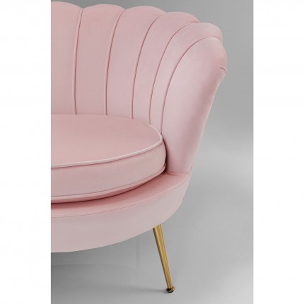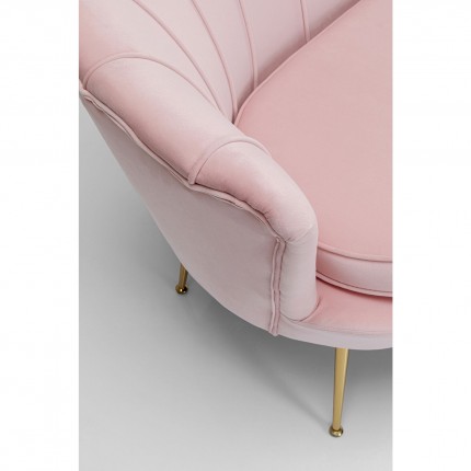 With its shell-shaped backrest, this sofa suggests that you will become a real gem once seated. The feminine silhouette is complemented by slim golden steel legs that complete its retro look. The armchair and footrest of the range are also available to complete your relaxation corner.