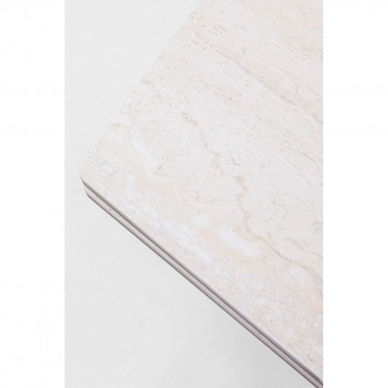 This contemporary dining table combines a sleek beige steel base with a matching stoneware top.