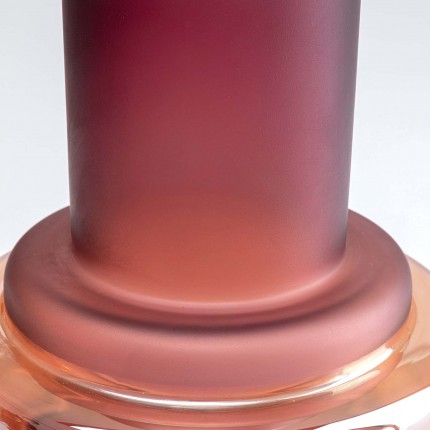 This vase plays on colors and finishes with its combination of matte violet-pink and transparent amber-yellow.