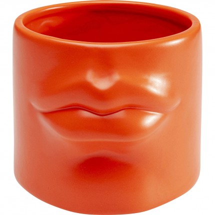 This cylindrical orange vase surprises with its boldly artistic sculpted mouth.