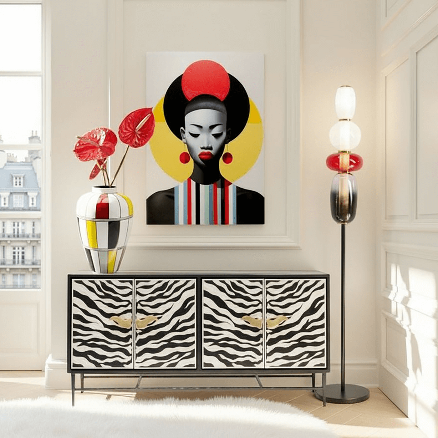 This vase features an artistic, colorful design with bright, eye-catching shades. It's crafted from hand-painted porcelain, making each piece unique. Its elegant curved silhouette and dynamic colors bring a touch of contemporary style to your home.
