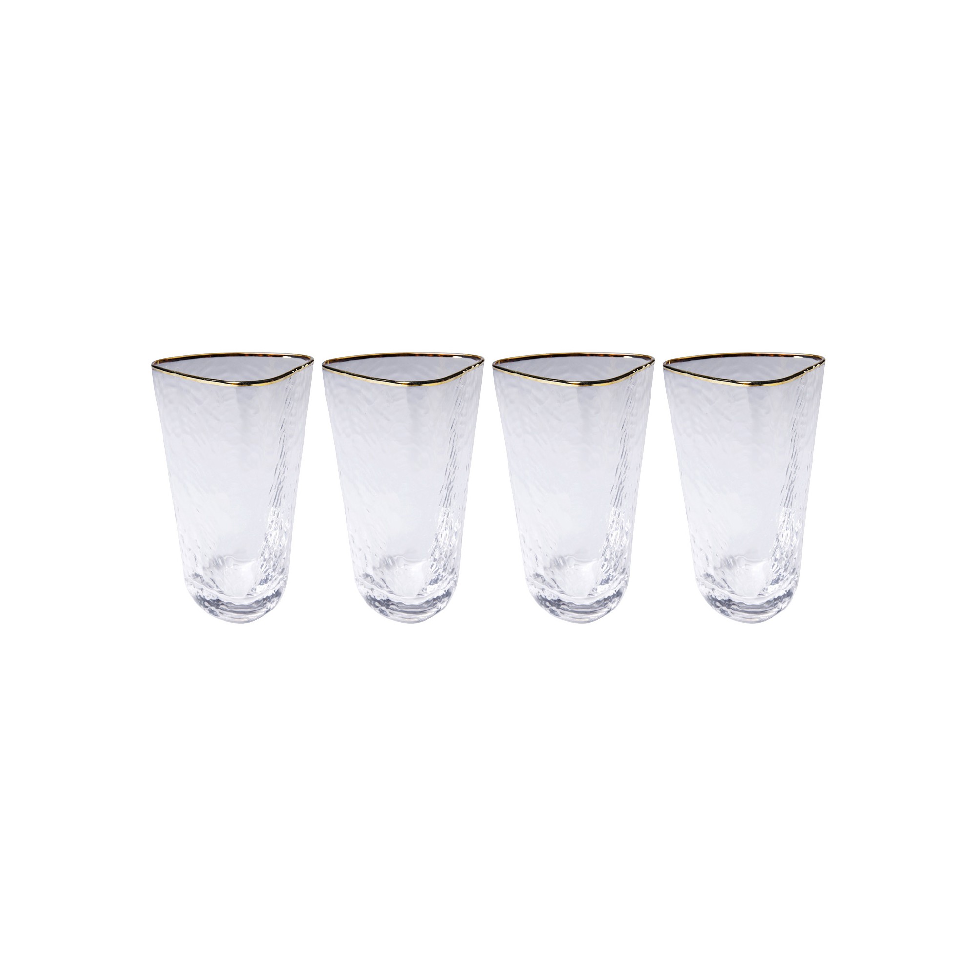 The Hommage range offers sets of textured glass wine, champagne, cocktail and water glasses with gold rims to elegantly complement your table decorations.