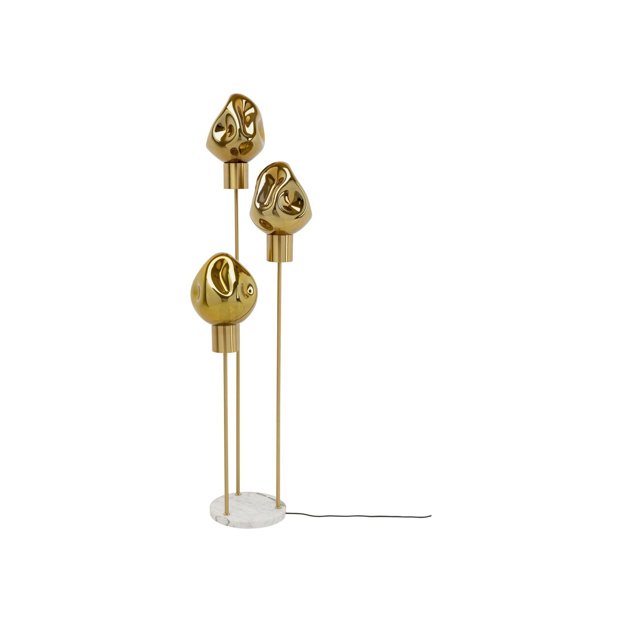 Ce lampadaire s'inscrit dans un style élégant et artistique avec ses abat-jours en verre déstructuré montés sur un pied en marbre.