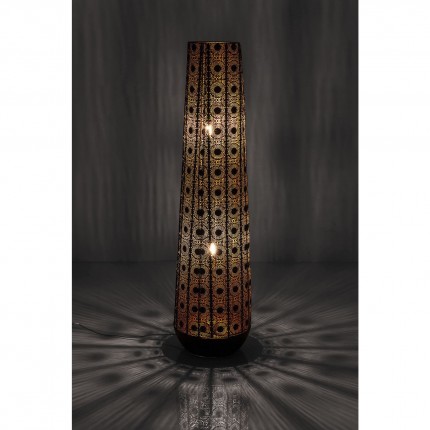 Craquez pour le design et les motifs orientaux de ce lampadaire en acier laqué noir. D'une hauteur de 120 cm, ce lampadaire est doté de deux points de départ lumineux qui assurent un éclairage optimal et efficace tout en restant tamisé. Avec ses courbes orientales, il suggère une ambiance feutrée et apaisante dans votre intérieur.