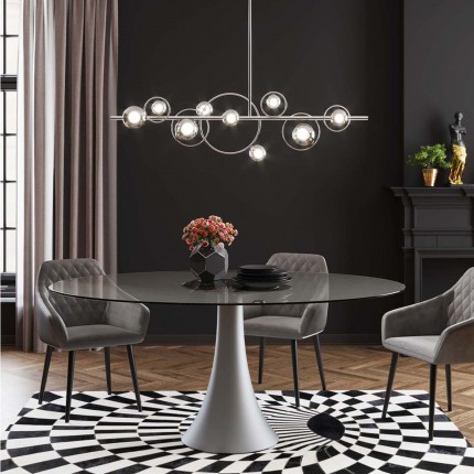 Cette suspension apporte une ambiance rétro à votre intérieur avec ses formes arrondies. Les abat-jours en verre sont disposés dans des anneaux en acier pour un rendu qui rappelle la galaxie.