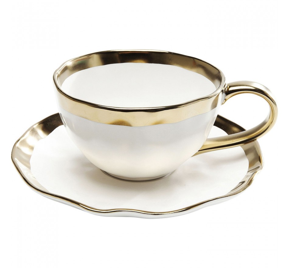 La gamme Bell vous propose une série de bols, tasses, plats et assiettes. En porcelaine blanche avec le bord doré, elle apporte de l'élégance à vos repas.