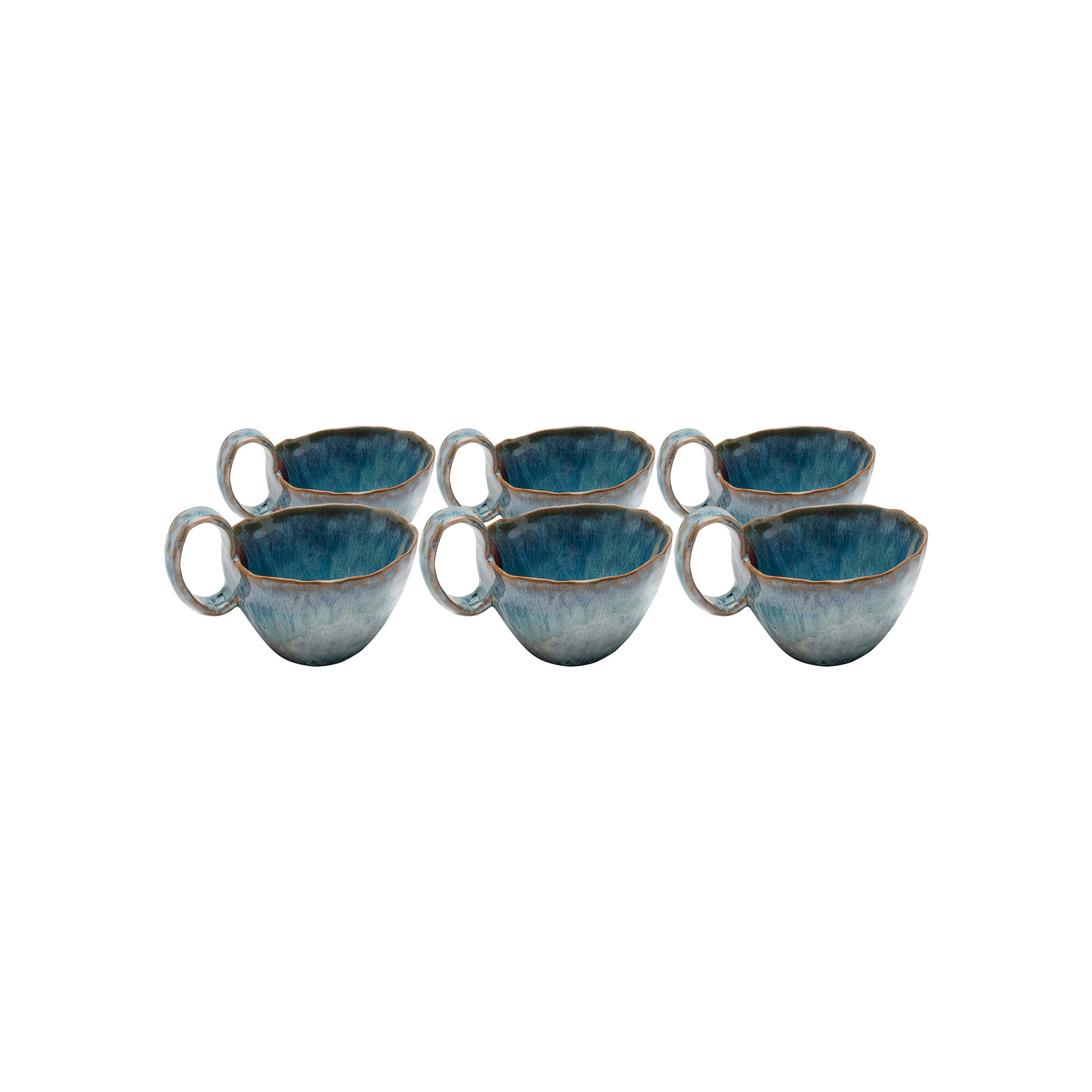 Ce set de six tasses en grès séduit par son bleu clair apaisant, rehaussé de petites touches colorées. Originales et pleines de charme, ces tasses sont idéales pour apporter fraîcheur et gaieté à votre table.