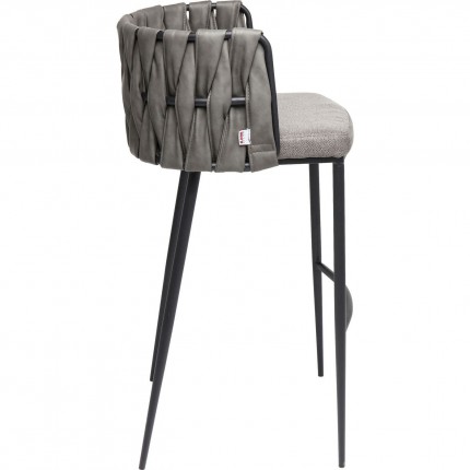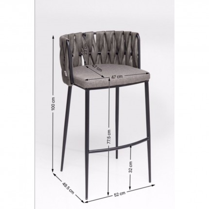 Op een hoogte van 100 cm onderscheidt de Cheerio kruk zich door de combinatie van chic en comfort. Een gezellige geweven rugleuning met gelakte deeltjes laat u toe uw rug te laten rusten en beklimt een comfortabele zitting van polyurethaanschuim. De kleur van de kruk is een mooie grijze kleur die past bij vele soorten interieurs. De lange, slanke, slanke, slanke poten in gelakt staal geven uw interieur een zekere elegantie.