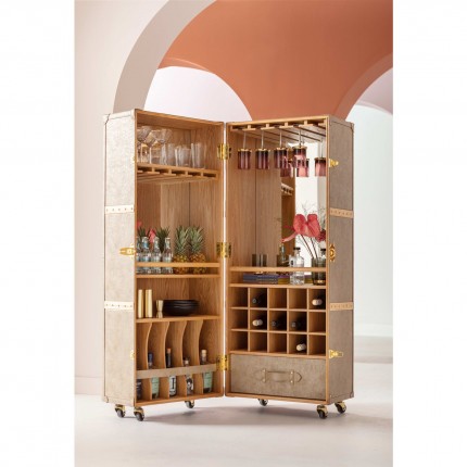 Reis terug in de tijd met de barkoffer vintage Westkust! Op wielen, kun je het verplaatsen zoals je wilt. Van meerdere lagen zijn binnenin gerangschikt zodat flessen, glazen, kurkentrekkers, enz. kunnen worden opgeborgen... Ontdek ook de Shipping Trunk Kolonial bar.