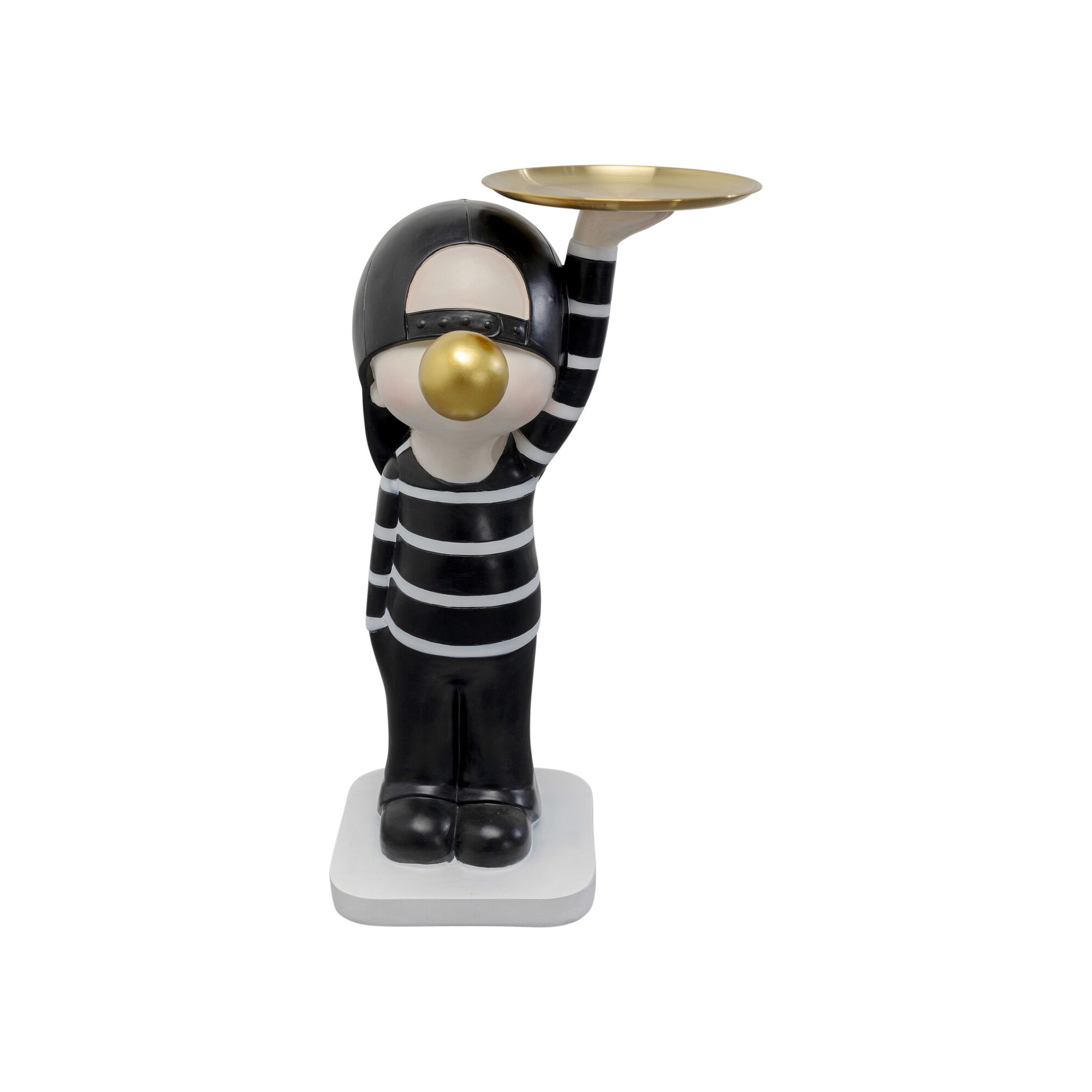 Geef je huis een speels tintje met dit originele bijzettafeltje! Er staat een jongetje op gekleed in zwart en wit, met een kauwgombelletje in zijn mond en zijn hand opgeheven als een ober die trots zijn dienblad draagt.