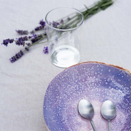 De Shirley-serie geeft pit aan je tafeldecoratie met zijn paarse kleur. De lichte stippen in cirkels trekken de aandacht naar de binnenkant van het bord.