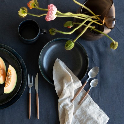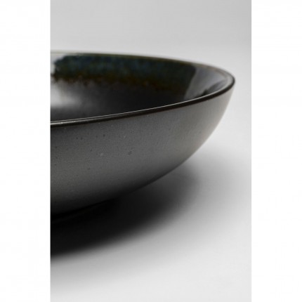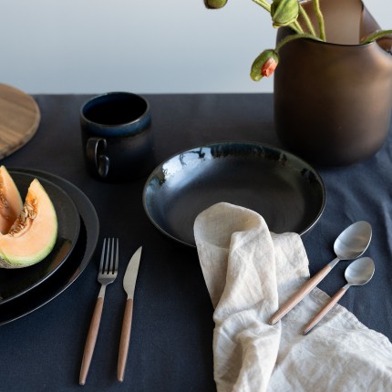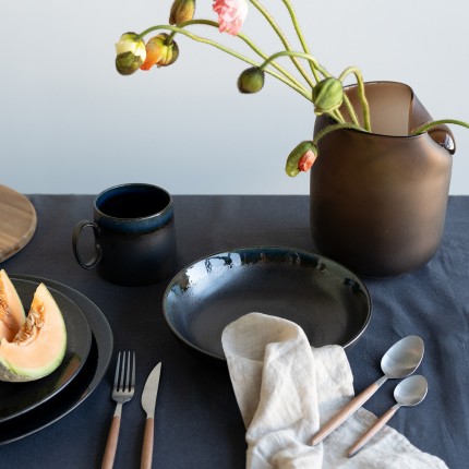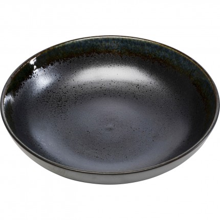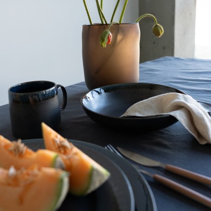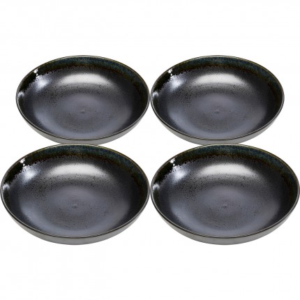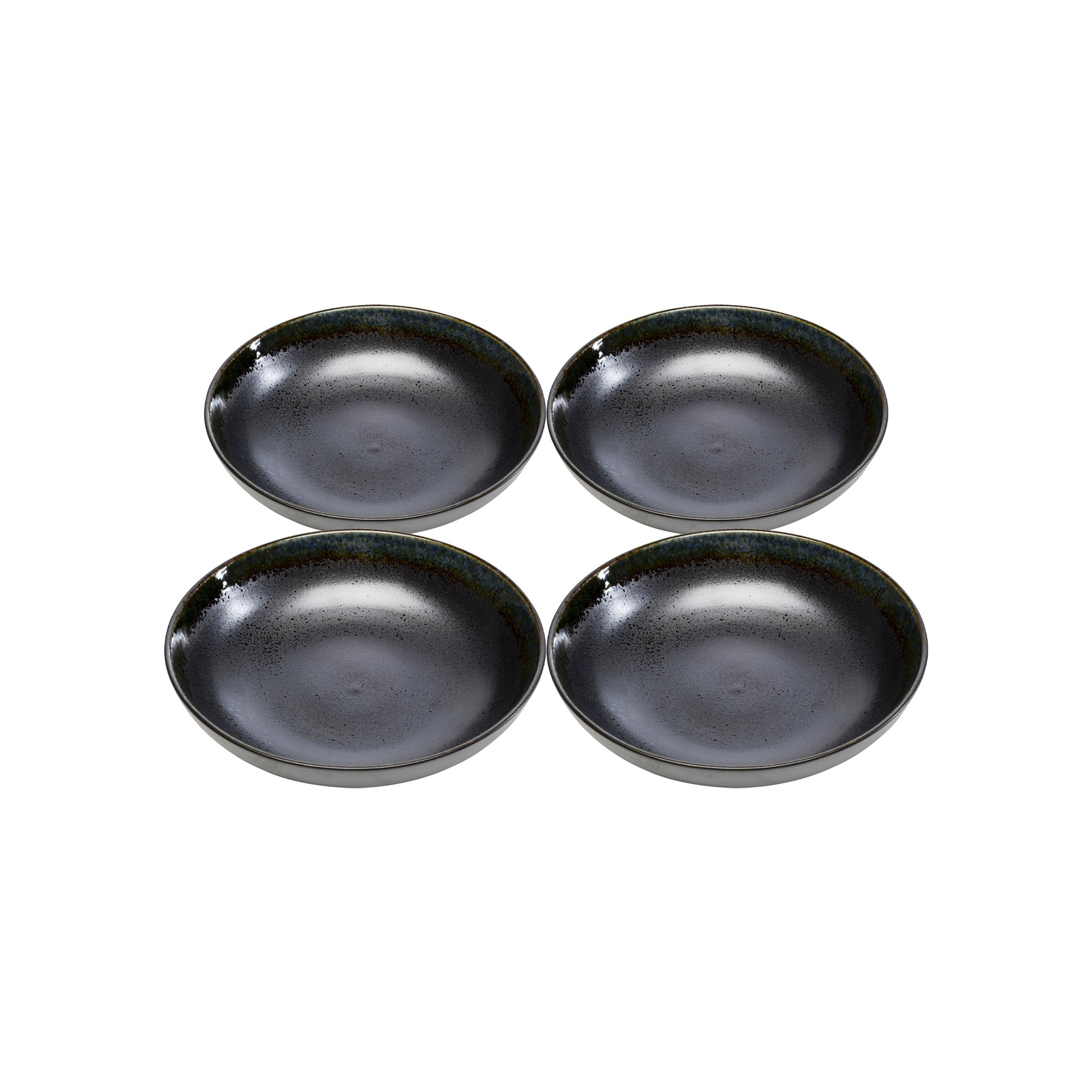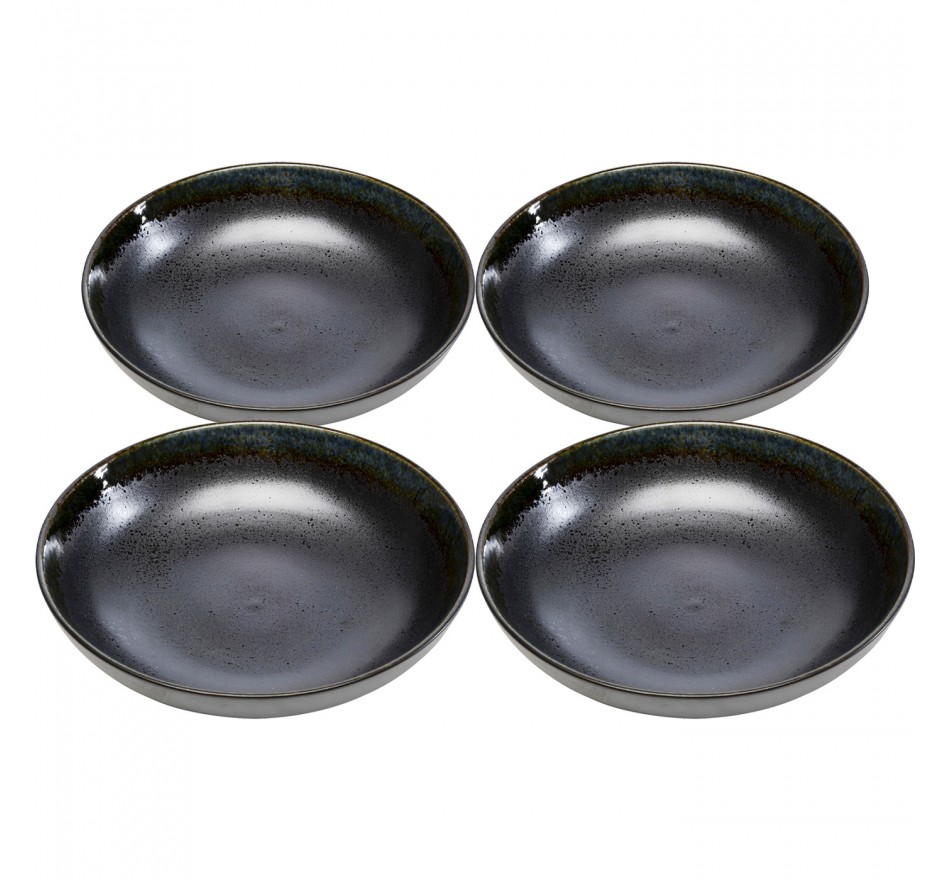 Deze soepborden laten je gerechten eruit springen tegen hun zwarte en donkerblauwe achtergrond.