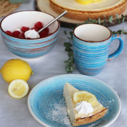 De serie Swirl Blue brengt je naar de Middellandse Zee met zijn blauwe kleur die doet denken aan de zee en bruine details die de typische pannendaken van deze kust weerspiegelen.