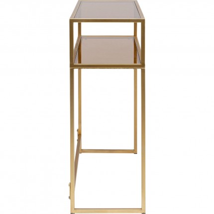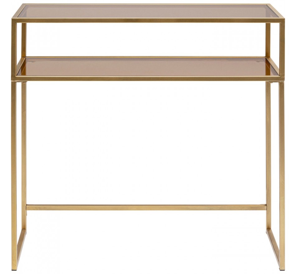 Deze console valt op door zijn minimalistische lijnen en glazen bladen met twee niveaus. Hij past net zo goed in een strak, elegant interieur. Beschikbaar in verschillende kleuren.
