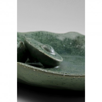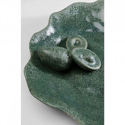 Deze ronde schaal van keramiek laat zien hoe natuurlijke kleuren en vormen je interieur kunnen verfraaien. Het organische ontwerp, het beschilderde keramiek en de verhoogde avocado's geven het een betoverende charme en een hoge kwaliteit. Gebruik hem om je eettafel of aanrecht te verfraaien. Het heeft ook andere functies, bijvoorbeeld als opbergplaats voor je sieraden of in de gang als opbergplaats voor je mobiele telefoon, sleutels en andere kleine voorwerpen.