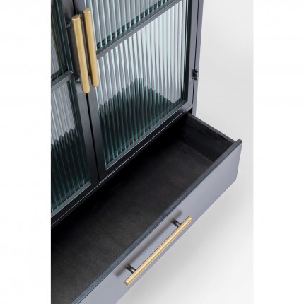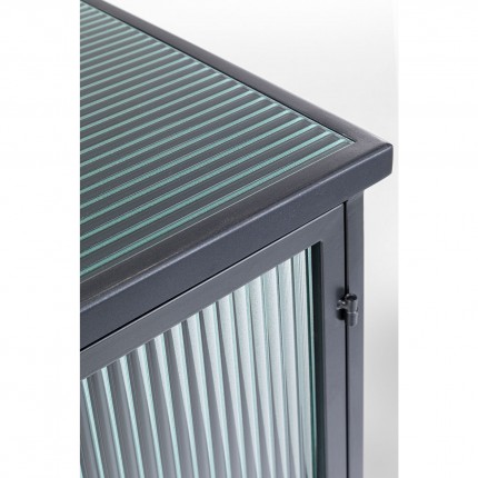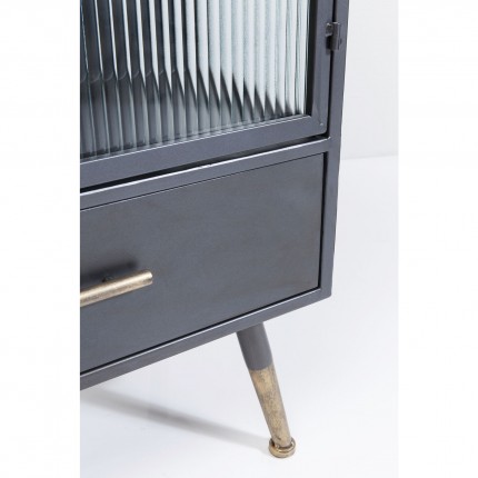 De la Gomera-collectie biedt een reeks industriële opbergmeubels voor uw woonkamer of kantoor. Dit meubel is gemaakt van gepoedercoat staal en gelakt geperst hout met glazen elementen die dimensie toevoegen, alles onderstreept door bronskleurige details.
