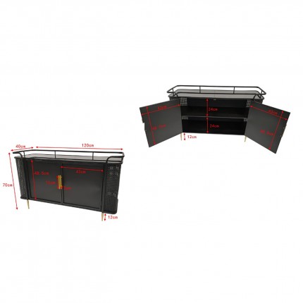 Dit dressoir biedt een combinatie van glas en staal om een retrogevoel in uw huis te brengen. De poten zijn aangevuld met gouden uiteinden die elegantie toevoegen. De zijkanten zijn geïnspireerd op geweven rotan om het silhouet lichter te maken.