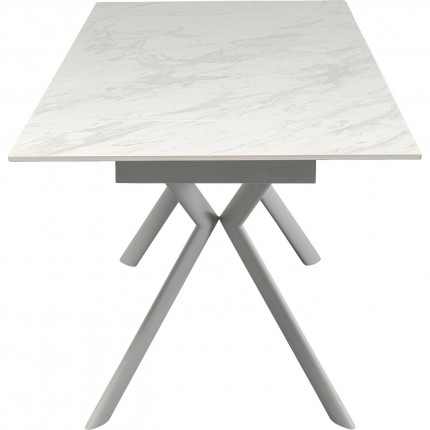 Deze tafel is ontworpen om zich aan te passen aan je behoeften en biedt maximale flexibiliteit dankzij de twee zijverlengstukken, perfect voor extra gasten. Het centrale blad meet 140 cm, waaraan je de twee verlengstukken van 30 cm kunt toevoegen. Het ontwerp maakt het een chique middelpunt voor je eetkamer.