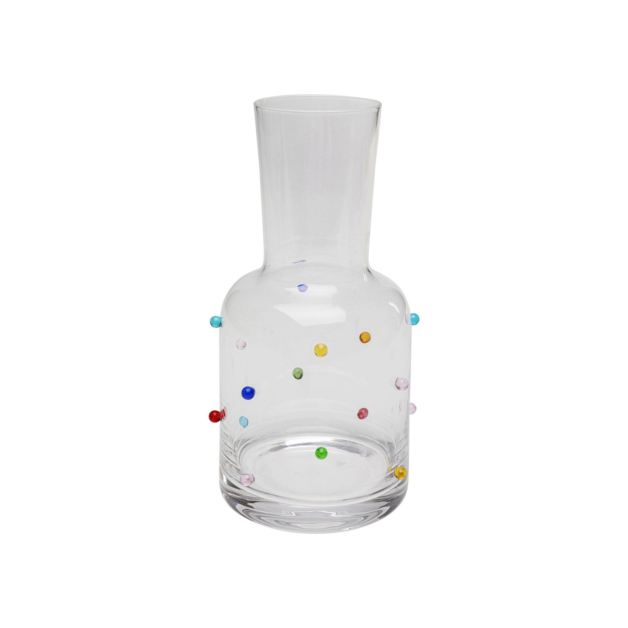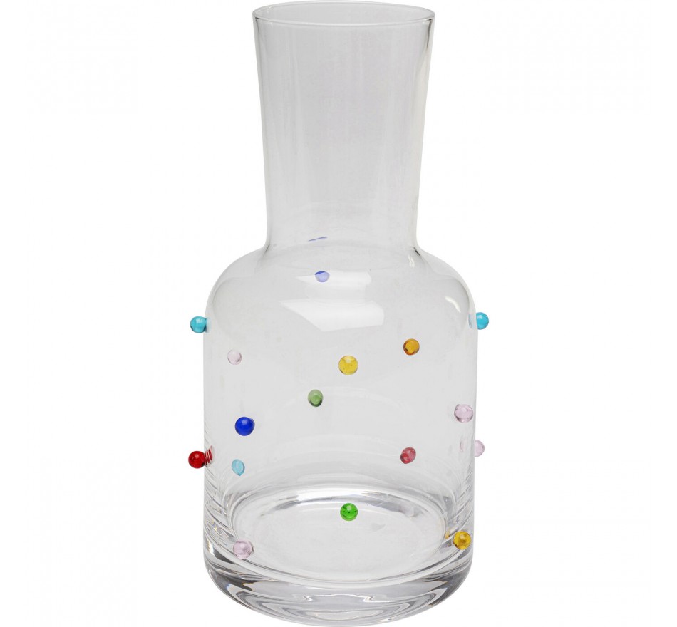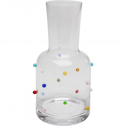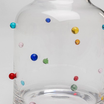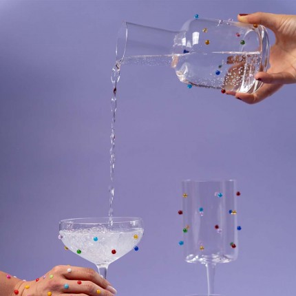 Deze karaf heeft veelkleurige kralen die over de hele rand verspreid zijn, wat doet denken aan een vrolijke explosie van confetti. Ideaal om een vleugje plezier en elegantie aan je feestjes toe te voegen!