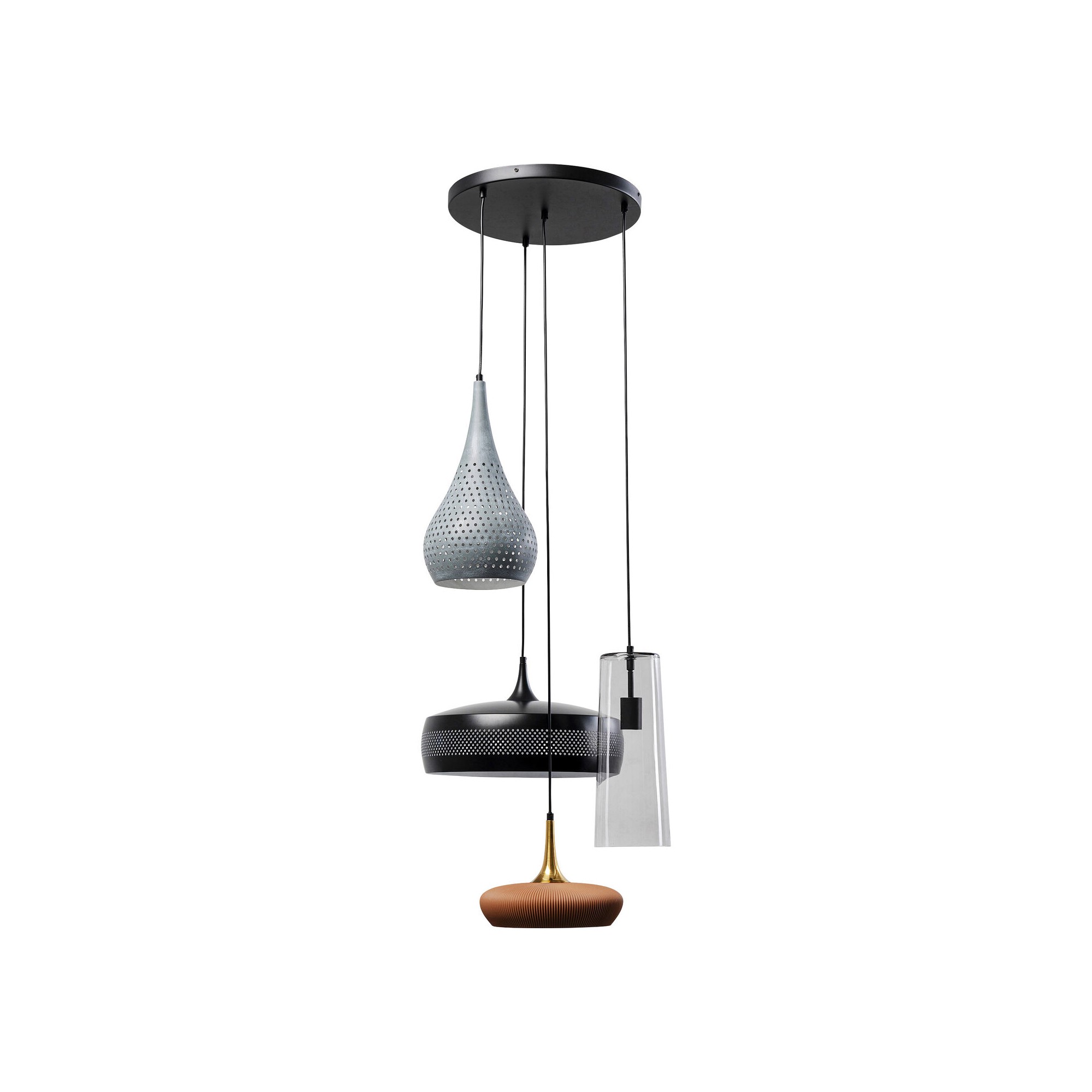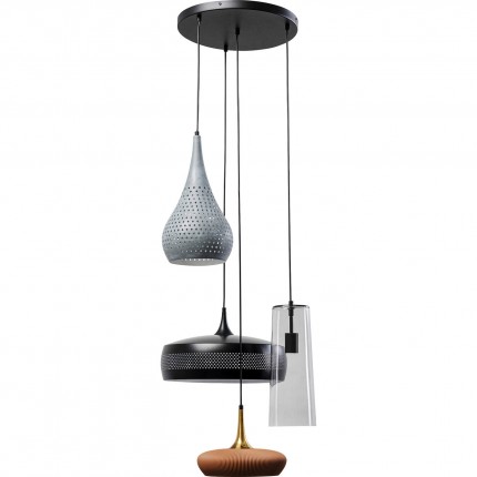 Deze hanglamp is origineel met vier kappen in verschillende stijlen. Een sterk stuk dat codes opschudt en de aandacht trekt.