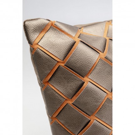 Dit kussen is een opvallende combinatie van rijke kleuren. De hoes is slim ontworpen met kriskras door elkaar lopende strepen voor extra dimensie.