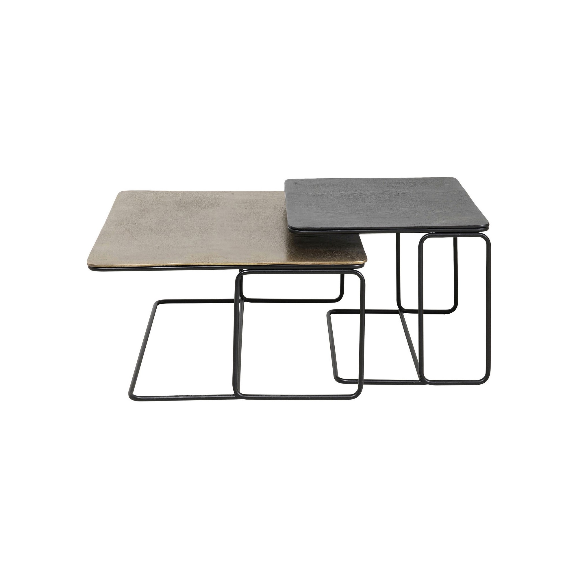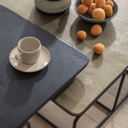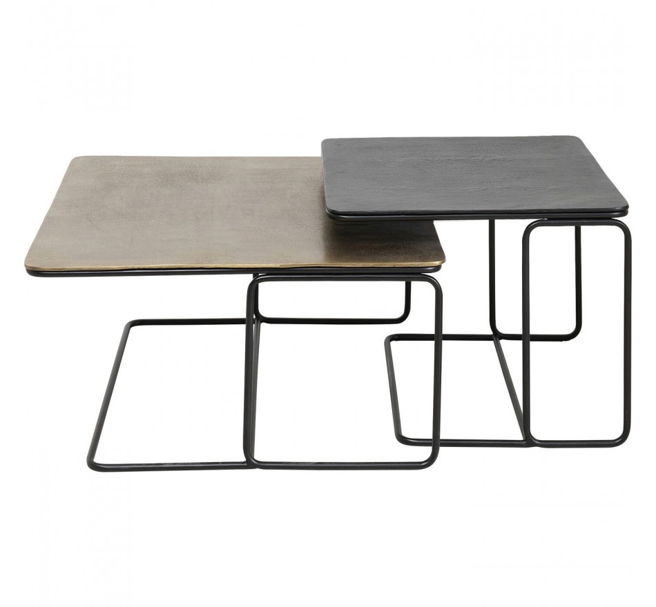 Deze set van 2 salontafels is gemaakt om lang mee te gaan, met gelakt stalen poten en aluminium bladen. De strakke lijnen zijn elegant en gemakkelijk te combineren met je interieur.