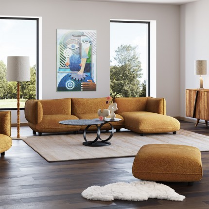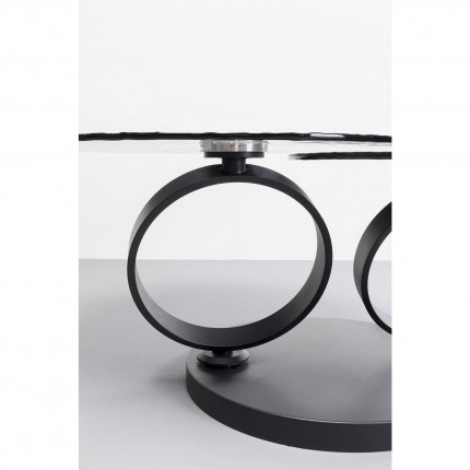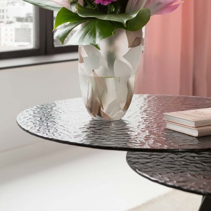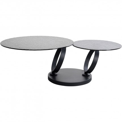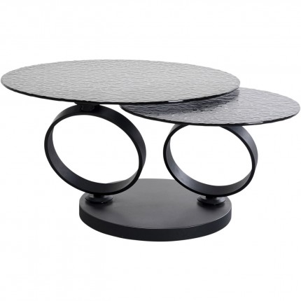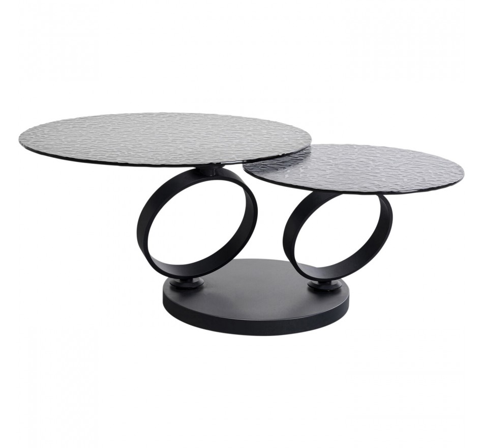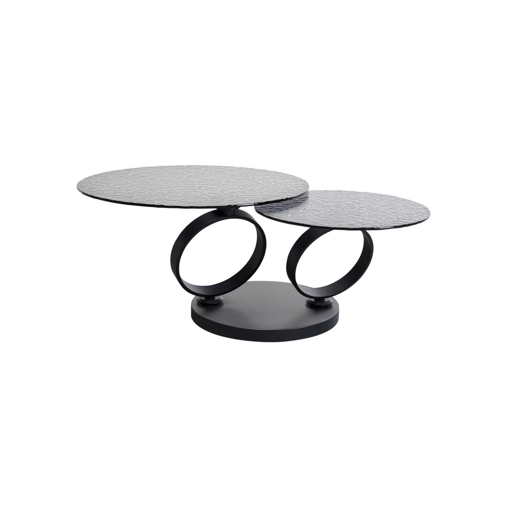 Met zijn luchtige ontwerp belichaamt deze salontafel de perfecte balans tussen elegantie en moderniteit. De ronde vormen komen samen in een harmonieus samenspel van rondingen, terwijl de stalen structuur een vleugje karakter en verfijning toevoegt. De twee draaibare bladen bieden praktische flexibiliteit, zodat je het oppervlak kunt aanpassen aan je wensen en huidige behoeften. Het is een echt middelpunt van de woonkamer en betovert met zijn grafische allure en intelligente functionaliteit.