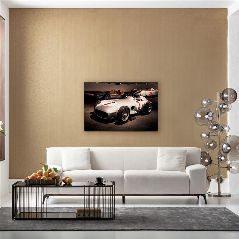 Breng een vintage, sportieve touch in je huis met deze glazen foto van raceauto's. Met een mythisch zilverkleurig model is dit elegante en dynamische beeld een lust voor het oog voor liefhebbers van auto's en retro design. Ideaal voor een woonkamer, kantoor of ruimte gewijd aan autopassie.