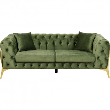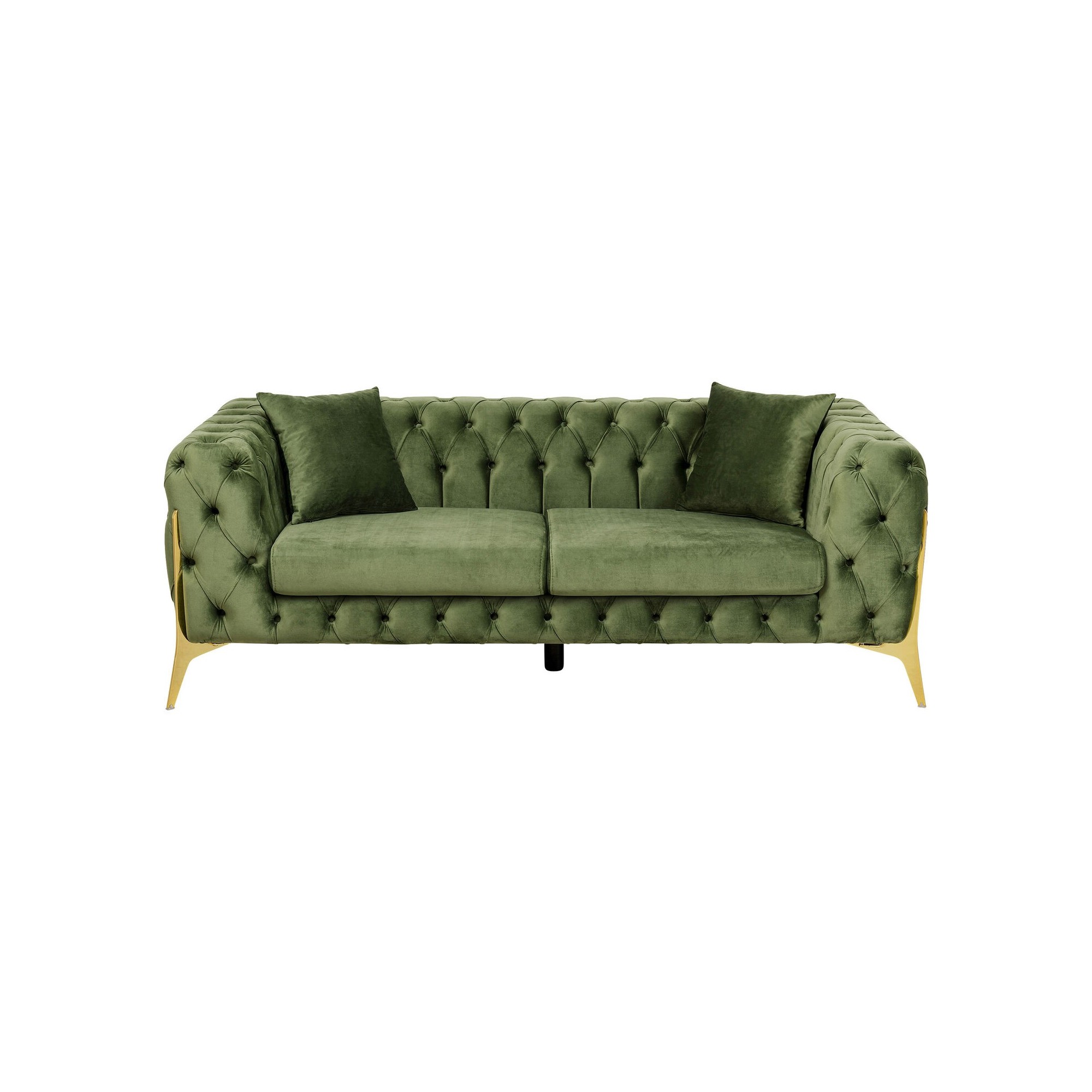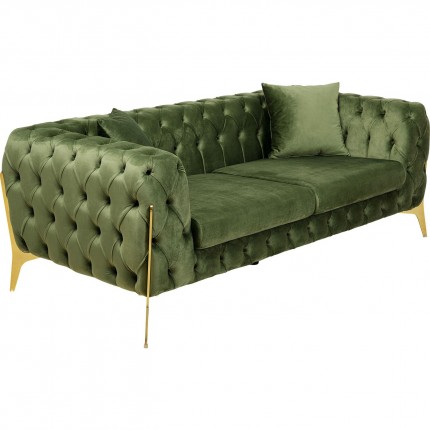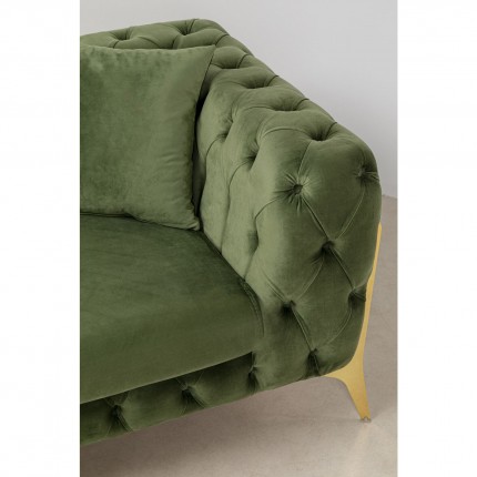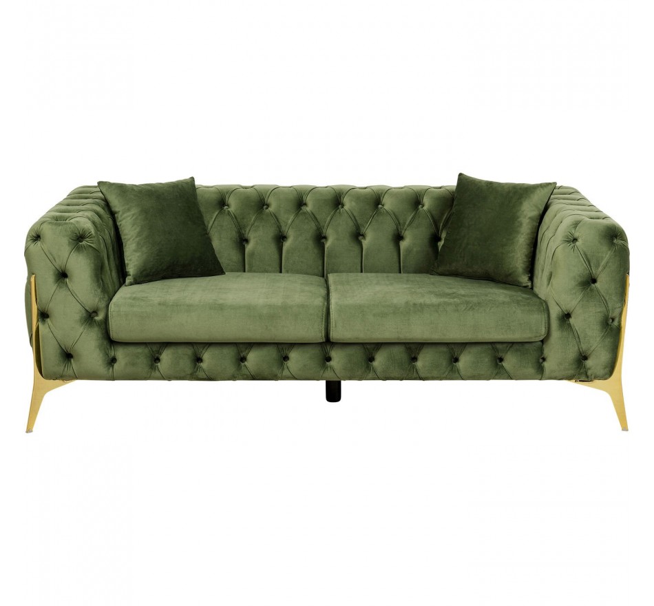 Deze bank heeft een elegante, verfijnde stijl met zijn beklede fluwelen stof en stalen poten. Het vult je barokke interieur aan voor een decoratie die een kasteel waardig is.