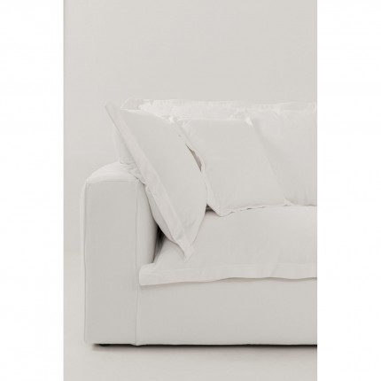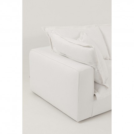 Deze witte hoekbank combineert comfort en elegantie met zijn strakke ontwerp. De rugleuning bestaat uit 7 kussens van verschillende afmetingen en biedt zachte ondersteuning en een ontspannen stijl. Ideaal om een gezellige, uitnodigende ruimte te creëren!